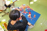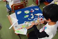 15日(月)に、1年生は生活科の時間に、子どもたちは、マジックやクーピーを使って、木製のこまに色を付けたり、絵を描いたりして、オリジナルのこま作りに夢中で取り組んでいました。