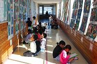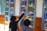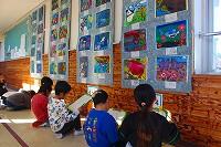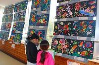 18日(水)に、1年生は図工の時間に作品鑑賞をしていました。子どもたちは、渡り廊下に掲示されている友だちや上級生の作品を観て、感じたことやいいなと思ったこと、その理由まで自分の素直な気持ちを言葉でまとめていました。
