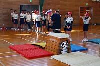 19日(木)に、4年生は体育の時間に跳び箱運動に取り組んでいました。子どもたちは、友だちに見守られる中、跳び箱の上で前回りする「台上前転」に挑戦し、友だちから拍手をもらってとても嬉しそうでした。