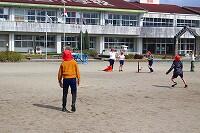 24日(火)に、5年生は体育の時間にボール運動(ティーボール)に取り組んでいました。子どもたちは止まっているボールを、バットを振って飛ばして、ボールが転がると「走れ、走れ」という友だちからの声援を受けながら懸命に走っていました。