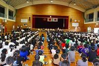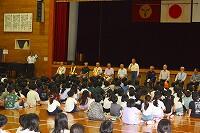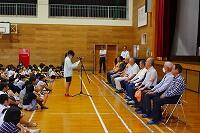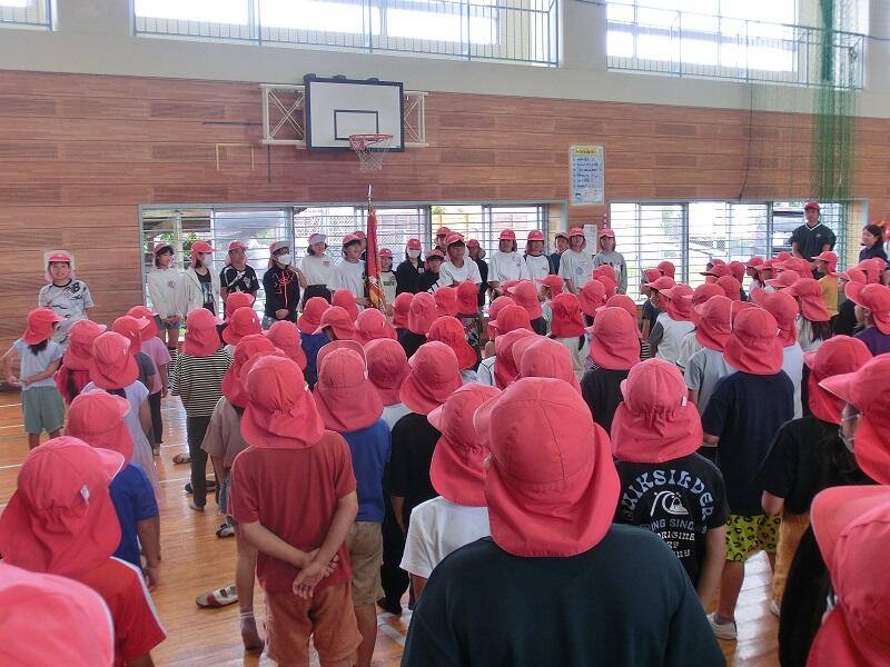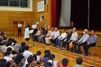 式後に生徒指導主事の先生から夏休みの過ごし方について話があり、子どもたちはしっかりとした態度で話を聞いていました。