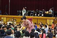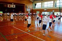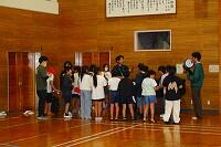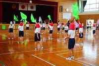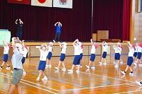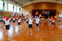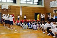 26日(水)の体育の時間に「んまつーポス」の皆さんに創作ダンスをご指導いただきました。「んまつーポス」は「スポーツマン」を逆さに読んだ名称です。子どもたちは、スカイダンサーをイメージしながら、空気を入れて膨らませるところから、膨らんで大きく舞い、空気が抜けるまでの様子を踊って表現していました。