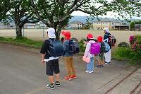 これまで班長や副班長をはじめ、保護者や地域の方々の見守りのおかげで子どもたちは、大きな事故やけがをすることなく、登下校ができています。夏休みまで約2週間となりましたが、子どもたちには気を緩めることなく、交通安全や熱中症に注意しながら登下校してほしいと願っています。