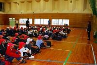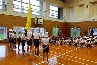 7日(月)の朝、登校班長会が体育館で行われました。子どもたちは、地区ごとに無言で整列していました。班長会では、担当の先生から横断歩道の渡り方や登下校中に気を付けることなどについて話があり、子どもたちは真剣に話を聞いていました。