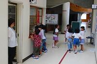 子どもたちは、暑さに負けることなく、給食準備にしっかり取り組み、おかわりするほどしっかり食べています。
