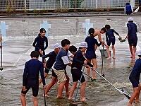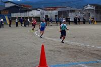 また、2年生は、サッカーボールを使って、シュートする側と守る側に分かれて、どちらがたくさん得点を取れるか、競い合っていました。