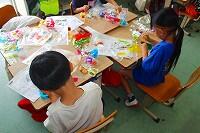 色鮮やかな作品ができ、子どもたちは、友だちと見せ合い、とても満足そうでした。