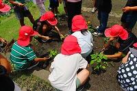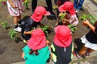 23日(火)に、2年生と6年生が一人一鉢運動に取り組んでいました。子どもたちは、自分の鉢に花の苗を丁寧に植えていました。