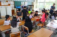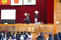 18日(火)に、2年生では、都城警察署生活安全課の方々にご協力いただき、非行防止教室を行いました。子どもたちは、2人の男の子がお店に行った時の出来事を担任の先生と生活安全課の方が演じる劇を見ながら、もし自分だったらどうするか、また、登場人物や家族の気持ちについて考え発表していました。