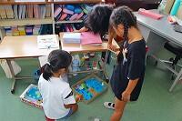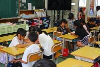4日(金)の昼休みの様子です。いつもは多くの子どもたちが、運動場に出て元気よく遊んでいるのですが、今週は暑さ指数が危険レベルの日が続き、外で遊ぶことができません。しかし、子どもたちは気持ちを切り替えて、室内でトランプや将棋などをしながら、みんな仲良く楽しそうに過ごしています。