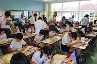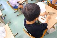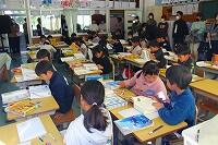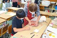 2年生では、図工でカッターナイフの使い方を学び、練習していました。練習する場面では、保護者の方が傍で教えたり、見守ったりされるなど、参観日ならではの光景が見られました。