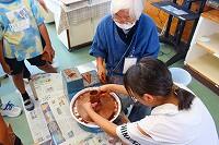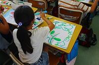 20日(金)に、1年生は図工の時間に単元「さわってまぜてきもちいい」の学習に取り組んでいました。