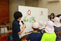 また、食べた物がうんちになるまでの説明では、担任の先生が臓器が貼り付けられたエプロンを身に付けると、子どもたちは大喜びでした。先生からの問いかけに、臓器の名称や消化という言葉を知っている子どももいて驚きました。