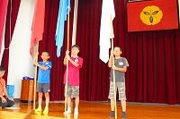 今朝の集会では、4年生が町の音楽祭で発表する2曲を披露しました。