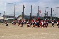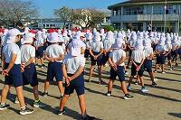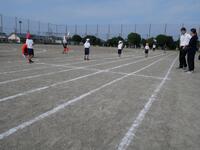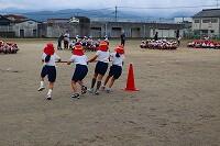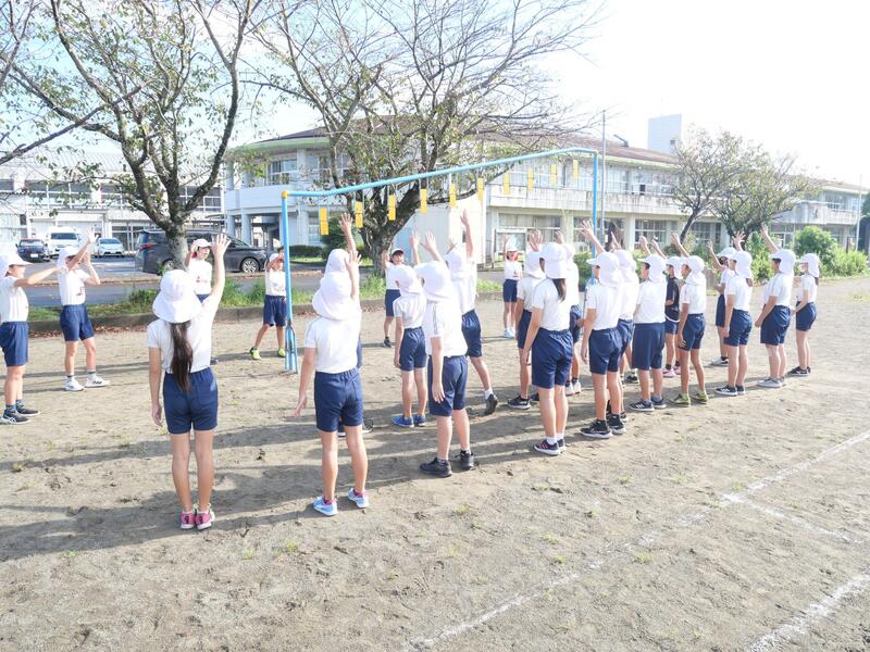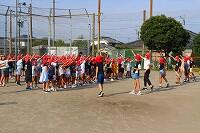 4日(木)の1校時に、2年生と3年生は運動場で体育の授業に取り組んでいました。