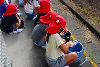 子どもたちは、絵の具やクレヨンとは違い、自然を生かした画材のよさを味わうことができました。