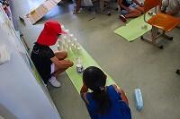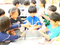 11日(火)に、4年生は理科の時間に空気を温めると体積はどのように変化するのか予想して、実験していました。子どもたちは、試験管の口を洗剤溶液に付けてシャボン玉の膜をはり、試験管を両手で握って温めていました。膜が膨れると、子どもたちは、「膨らんだ!」と大はしゃぎでした。