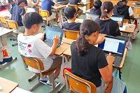 25日(火)に、4年生は「みやざき小中学校学習状況調査」に取り組んでいました。調査は、CBT(パソコンを使って行う試験)方式で実施され、子どもたちはタブレット端末の画面を真剣な表情で見ながら、一生懸命に解答を入力していました。