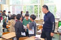 2日(水)の朝、宮崎サンシャインズの選手やコーチの皆さんが来校され、児童玄関前であいさつ運動が行われました。子どもたちは、選手の皆さんと元気よくあいさつを交わしていました。
