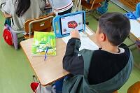 19日(水)に、1年生は国語の時間に、はたらく車の図鑑づくりに取り組んでいました。子どもたちは、クレーン車や除雪車など自分で調べたい車を決めて、働きやつくりなどについて、タブレット端末を使って調べてワークシートにまとめていました。