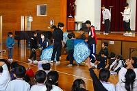 また、三股町オレンジ劇団による劇があり、振り返りのクイズでは、子どもたちは、講話の内容を思い出しながらしっかりと答えていました。