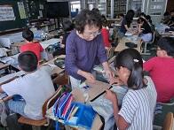 5年の家庭科の学習ではエプロンづくりに取り組んでいます。ミシンを使う時間に、地域や保護者のボランティアの方に指導の協力をいただきました。子どもたちは熱心に学習に取り組んでいました。