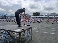 児童の運動技能・能力を調べる「体力テスト」を学年ごとに行いました。この日は、1年生の体力テストのお世話を6年生がしました。優しいお兄さん、お姉さんに教わり励まされて、1年生が一生懸命がんばる姿が見られました。体力テストの結果をもとに体育指導の重点を定めて、一年間体力づくりに取り組んでいきます。