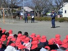 不審者の侵入に備え、安全活迅速に避難することができるように、避難訓練を行いました。不審者の侵入ルートによる子どもたちがとる避難行動の仕方や、職員の動きなどを確認しました。