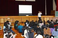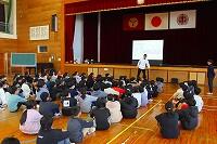 15日(木)に、5年生でダンス出前授業が行われました。出前授業は、来年、宮崎県で開催される「日本のひなた宮崎 国スポ・障スポ」大会をみんなで盛り上げることなどを目的に実施され、子どもたちは県の国スポ・障スポ担当の方から大会についていろいろと教えていただきました。