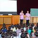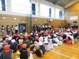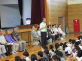 対面式では、ボランティアの方々の紹介のあと、児童を代表して6年生の酒井ももこさんがあいさつをしました。全校児童の気持ちを作文にして発表してくれました。そのあと、ボランティアの方々を代表して西山繁敏さんが、「一緒にがんばりましょう。」と全校児童に話をしていただきました。