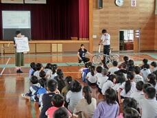 3年、4年では、交通教室を行いました。3年生は、自転車の点検、安全な乗り方、歩行での横断歩道の渡り方などを練習しました。4年では、自転車の点検、安全な乗り方、自転車での道路の横断の仕方を練習をしました。実際の道路では、見通しの悪いところや、車の多く通るところがあるので、周囲の状況をよく見て安全に通行し、事故に遭わないように願っています。
