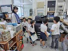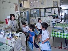 1年生の「学校たんけん」の学習を行いました。1年生は入学して1か月半。1年生はグループに分かれて、学校の中でこれまであまり入ったことのない事務室、校長室、職員室、保健室などの部屋を訪れ、どんなものがあるか、どんな先生がいるかを、興味津々の表情で見て回りました。とても楽しかったようです。