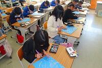 9日(火)に、4年生は図工の時間に木版画に取り組んでいました。子どもたちは、思い思いに描いた動物や植物を彫刻刀で慎重に彫っていました。みんな彫刻刀の使い方にも慣れて、とても上手に使いこなしていました。