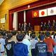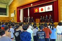 校歌斉唱では、子どもたちは、感謝の気持ちを込めて元気よく校歌を歌い、最後まで先生たちとの別れを惜しんでいました。