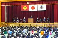 26日(木)に、修了式が体育館で行われ、各学年の代表児童に、1年間勉強を頑張った証として修了証が授与されました。代表児童は、名前を呼ばれると大きな声で返事をして、修了証を受け取っていました。