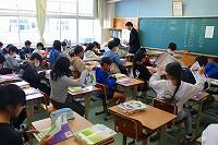 小学校での最後となる給食では、楽しそうに会話したり、元気よくおかわりのジャンケンをしたり、1年生からのビデオメッセージを観たりしていました。