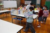 始業式後の学級活動では、新しい教室に荷物を運んだり、新しい教科書に名前を書いたりしていました。また、担任の先生から新しい学年で頑張ってほしいことなど話があり、子どもたちはしっかりと話を聴いていました。