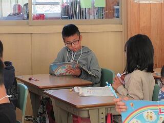 先日、3年生の外国語活動の様子をご紹介しましたが、日に日に上達しています。進歩の様子を見ていただきます。