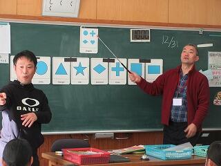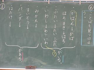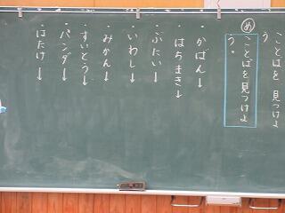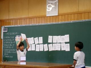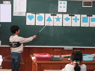 「覚えたぞ!」という自信のある子は、前に出て先生が発音した形を指し棒で指します。何人かチャレンジしましたが、なかなかの正答率でした。