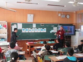 2回目となるこの日は、国旗を見てその国を当てるクイズや自分の好きな国の言い方を、ALTの先生に教えてもらいながら、楽しく活動していました。