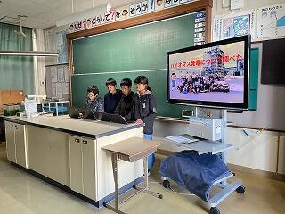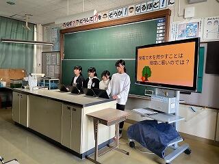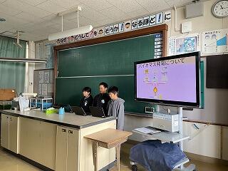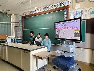 3人から5人のグループで、バイオマス発電とそれに関連する宮崎県内の取り組みについてスライドを作成し、発表しました。本番は6年生を前に、簡単なジェスチャーを取り入れたり声に抑揚をつけたりしながら、一生懸命に伝えることができました。
