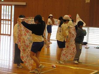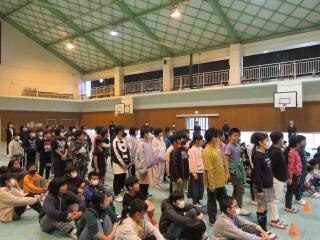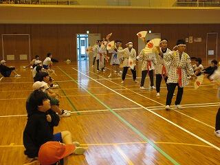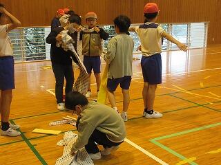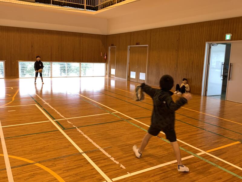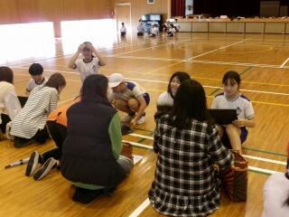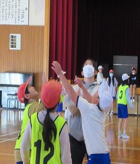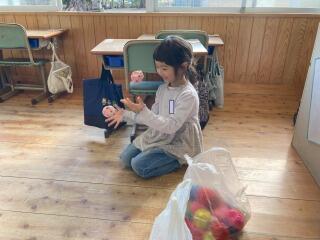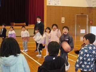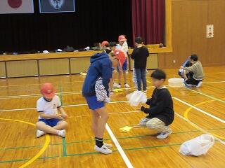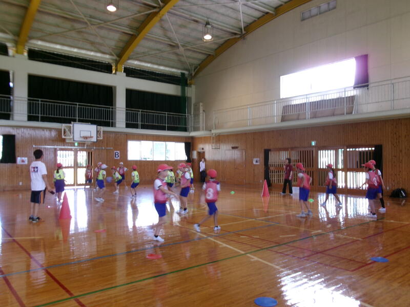 その後、ボールを使った遊びを教えてもらい、みんなで楽しく活動しました。体育館に大きな笑い声が響きました。