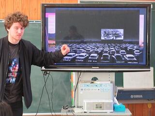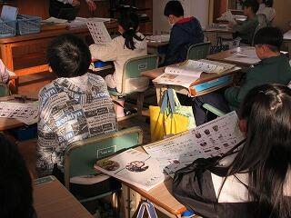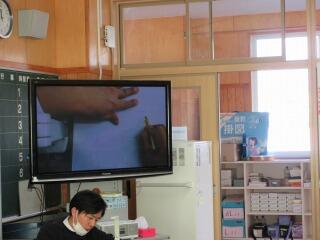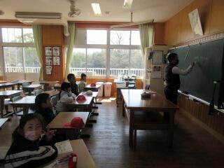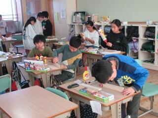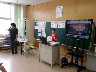 2年は教室で交流しました。やはり最初は日本とアメリカの文化の違いが話題になりました。「きれいに並んだ車に乗っている人は、みんな前方のスクリーンに映された映画を見ているんですよ。」という説明を聞いて、「車に乗ったまま映画を観る?」という感じでした。この方法は日本でも時々見られるようになりましたね。