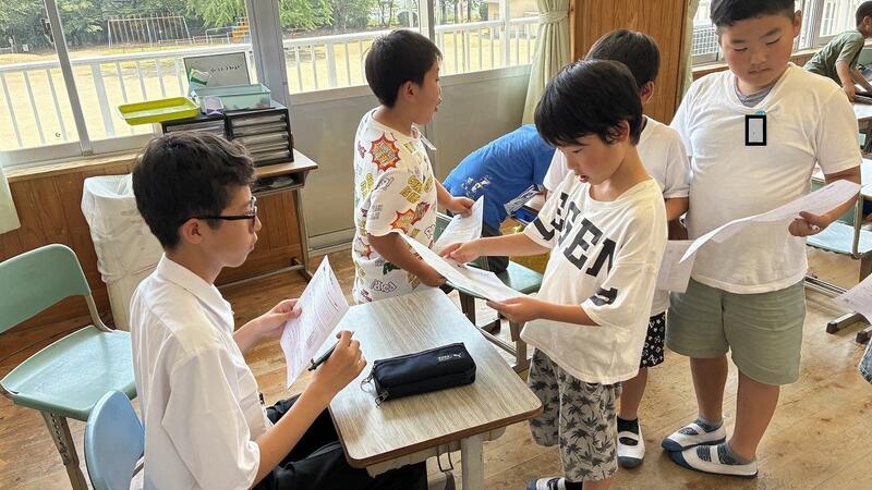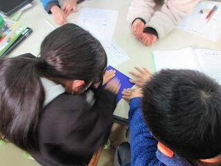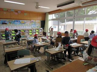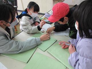 子ども達同士で色々なことを話し合っています。さずが山小っこ!自分たちの校区のことはよく知っています。