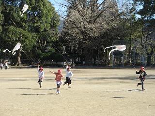 広いところで安全にたこ揚げを楽しんでね。