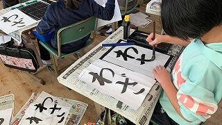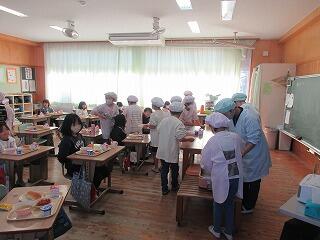 5年生は、自分たちで育てたもち米を使った「餅つき」に取組ました。初めて体験する子供も多く、お父さんたちに教えてもらいながらの餅つき。歓声を上げながら、楽しそうに取り組んでいました。