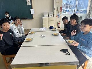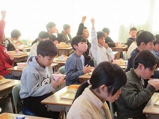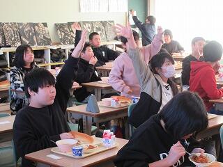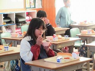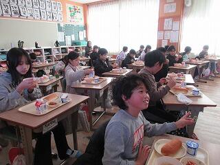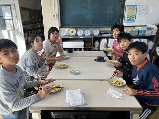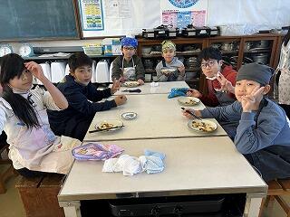 6年生に準備をしてもらい、おいしくいただきました。この日の献立は、大好きなカレーライス。みなさん、たくさん食べましたか?