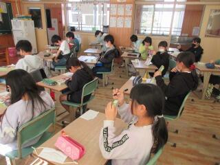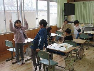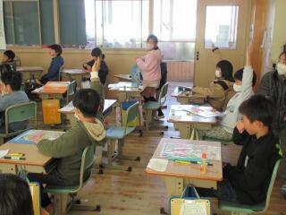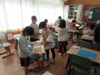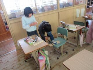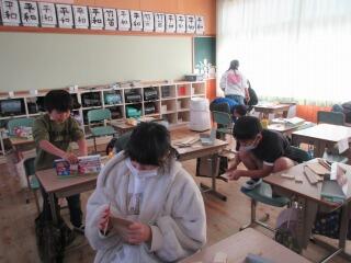 1年生は、「昔の遊び」体験、2年生は、折り紙で「動く鶴」の作り方を、3年生は、「リコーダー教室」をしました。