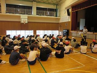 6年生は、「宮崎サンシャインズ」の選手の方をお招きし、「野球教室」を開催しました。野球未経験の子供たちも多く、ボールのキャッチの仕方やバッティングのこつを教えてもらいながら、後半は、ゲーム形式の活動で、楽しい時間を過ごしていました。