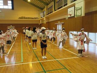太陽の下で力強く!6年生が「向原奴踊り」を披露